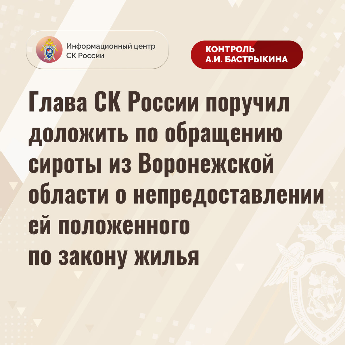 Глава СК России поручил доложить по обращению сироты из Воронежской области о непредоставлении ей положенного по закону жилья