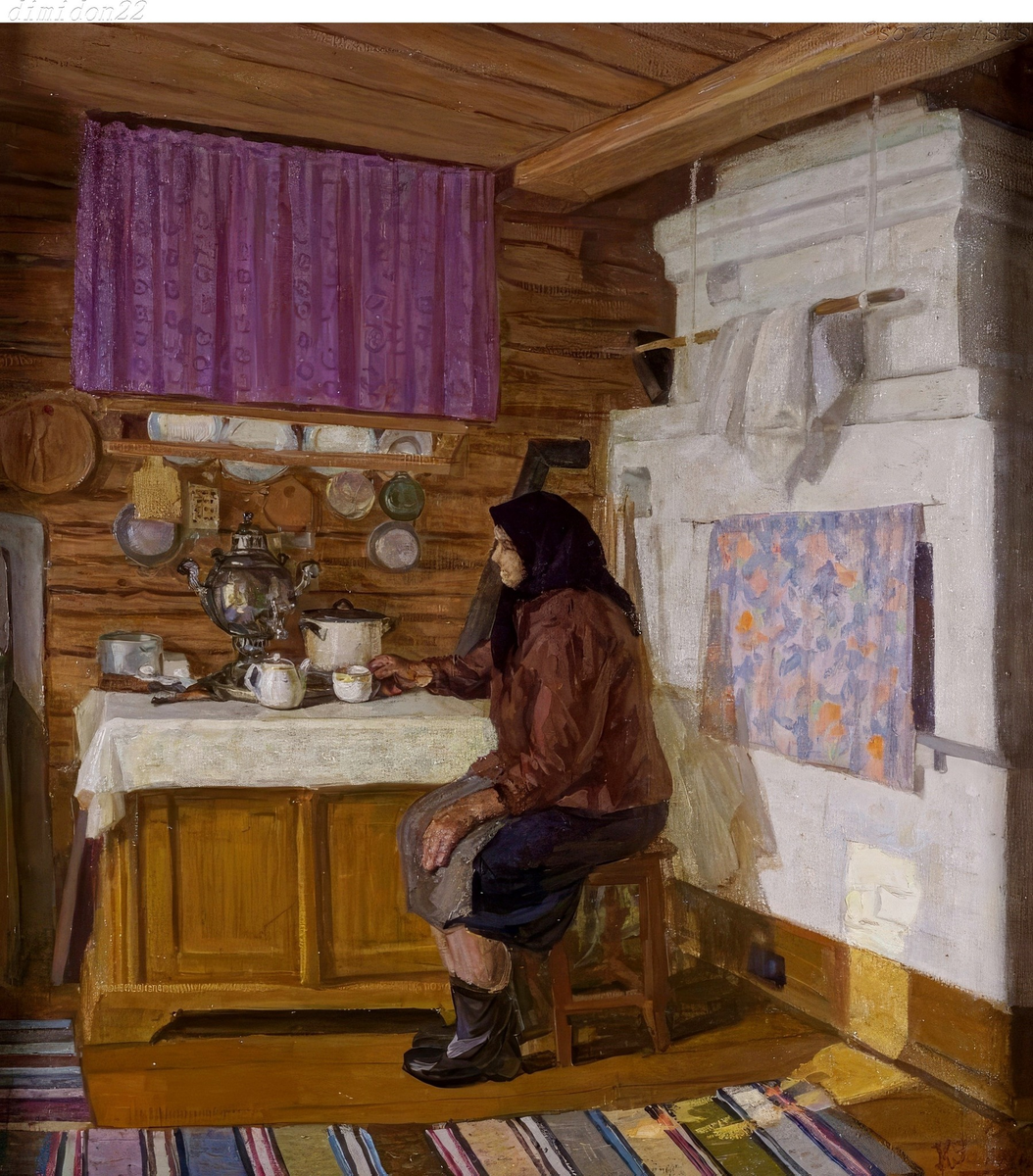 И пример тому... эти картины. Залозный Константин Григорьевич (09.06.1929, с. Подлесовка ныне Томской области - 09.06.1992, Томск). «Баба Груня». 1975 год. Холст, масло; 66 х 60 см.; (Томский областной художественный музей). У бабы Груни жизнь такая, что даже ангелы заведует! И таких святых бабушек в нашей стране было много. Залозный Константин Григорьевич (09.06.1929, с. Подлесовка ныне Томской области - 09.06.1992, Томск). «Когда яблони цветут». 1963 год. Холст, масло; 80,5 х 61 см.; (Томский областной художественный музей). Героиня песни Анны Герман "Один раз в год сады цветут". Очень лиричная картина. Мочальский Дмитрий Константинович (02(15).02.1908, Санкт-Петербург - 20.12.1988, Москва). «Вечер на целине». 1954 год. Холст, масло; 59 х 72 см.; (Ивановский областной художественный музей). Деда нашего деда, фронтовика, хотели на Целину отправить, а он не поехал, как не уговаривали, как не стыдили - и прочее. А эту молодежь уговорили - или она, как пел Высоцкий, добровольно? Родио