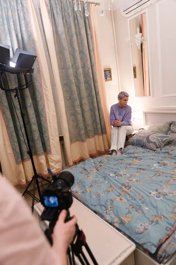 - Держите камеру, настраивайте. Я работаю – вы ловите. Свет закатный и красивый. Моделька пока еще тоже.