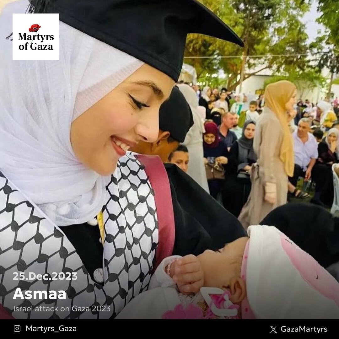 Несмотря на козни платформы, продолжаю публикацию в рамках палестинского проекта о тех, кого больше нет. Ссылки на предыдущие посты по этой теме внизу под текстом этой публикации. Асмаа. 22 года. За несколько дней до начала бойни получила диплом инженера. После красивой истории любви вышла замуж за Шади (второй снимок в галерее), родила дочку Шам ("Сирия" на арабском). Вместе с дочкой и еще примерно 100 людьми. В канун Рождества. Ясин (в центре). Студент медик. С мамой, братьями и сестрами. Масааб. Профессор и преподаватель физики. Его дочь Сара родилась через пять дней. Уже сиротой. Нагам. 17 лет. Всегда шутила и поднимала всем настроение. Шам. Школьница. Несмотря на юный возраст, выучила наизусть Коран. С семьей Нада и Лин. Возраст девочек не указан. Доктор Рахаф. Исламовед. 120 дней она с семьей умудрялись выжить. Потом "пряник". В "безопасной зоне"... Это последний пост, который она написала в Facebookе: «Каждый раз, когда я плачу или слабею, меня просят не плакать, но я устала