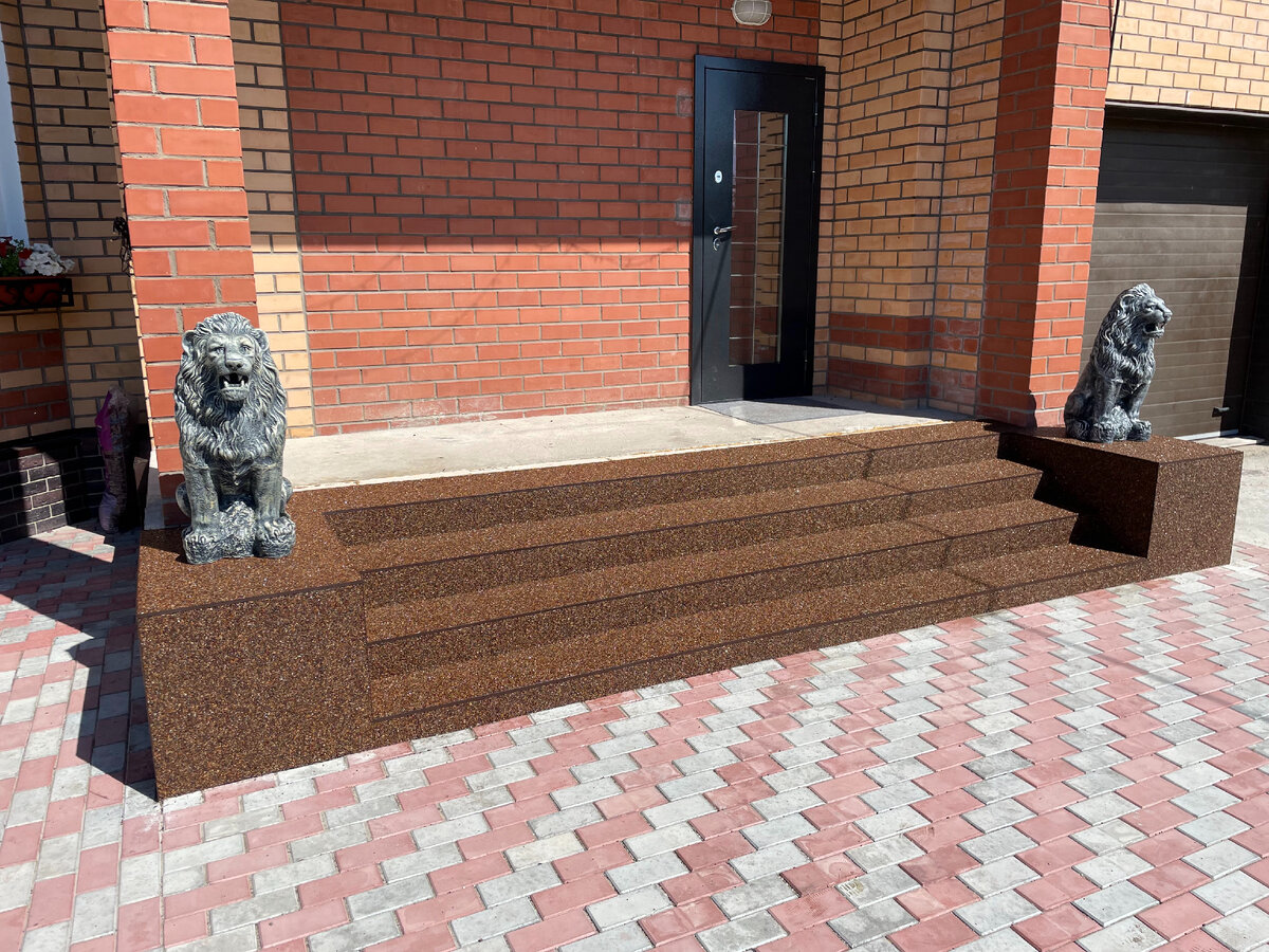 Финишный слой. В качестве финишного слоя может служить либо лак, и тогда покрытие останется дренажным, либо герметизирующий слой, чтобы получить запечатанный каменный ковёр. Герметичный каменный ковёр без герметизирующего слоя не получится, поэтому тут сэкономить никак не выйдет. А вот на улице дренажное покрытие можно сразу после установки лаком не покрывать, а сделать это уже на следующий сезон. Он снова заблестит и будет смотреться как будто нанесли буквально вчера. В будущем необходимо будет повторять процедуру лакировки раз в 2-3 года в зависимости от эксплуатации, и тогда покрытие будет всегда смотреться свежим и прослужит и десять и пятнадцать лет.