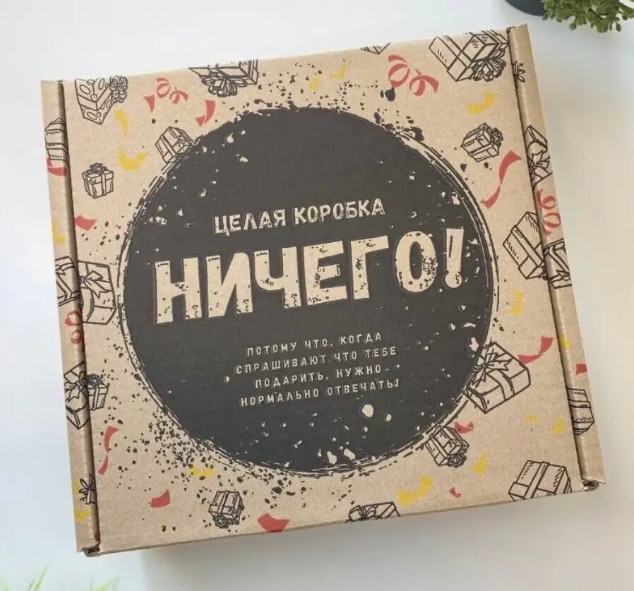 Читала тут текст одного автора на Дзене, которая рассказывала, как спросила мужа, что ему подарить на 23 февраля. Тот ответил: - Да, ничего не надо. Мне кажется самый популярный мужской ответ на этот вопрос. Особенно когда люди долго в браке и уже столько всего дарили напередали, что кажется удивить нечем. Однако, я тоже на днях сидела на одном известном маркетплейсе, выбирала мужу подарок и встретила оригинальную идею. Она меня позабавила, поэтому делюсь с вами. Я увидела коробку, на которой большими буквами написано: "Целая коробка НИЧЕГО". Коробка средних размеров, где-то 20 см на 20 однотонная белая или коричневая. Когда её открываешь, внутри лежит открытка с подписью: "А потому что надо нормально отвечать, когда тебя спрашивают, что подарить". Забавный вариант правда? Если у супругов хорошее чувство юмора, самое то. Я люблю полезные подарки и дарить, и получать. Муж обычно не озвучивает свои предпочтения, полагаясь на мой вкус. Люблю радовать его в мужской день парфюмо