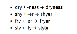 Например, слова dismay и subway из нашего предыдущего заголовка оба оканчиваются на гласную + y, поэтому 'y' остается.