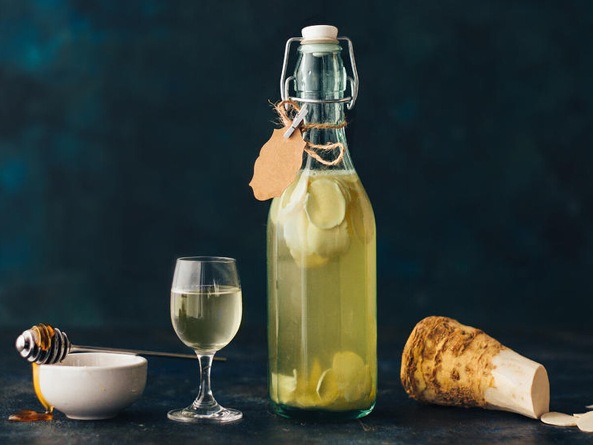 Помимо употребления хрена в виде приправы (с добавлением свеклы или без нее), есть масса народных рецептов лечебных препаратов на основе корня растения. Мужчинам рекомендуем воспользоваться рецептом для повышения потенции: натертый корень растения надо смешать с медом и горчицей (по 1 чайной ложке) и добавить 2 столовые ложки лимона. Полученную ароматную смесь заливают пол-литровой бутылкой спирта и держат 4 дня, в темном месте, не забывая периодически взбалтывать. Принимать настойку нужно в количестве двух чайных ложек перед приемом пищи.
