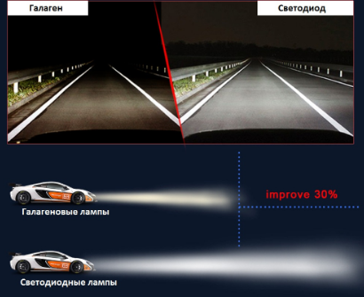 Галогеновые лампы обеспечивают яркое и равномерное освещение дороги, но их световой поток несколько бледнее по сравнению с диодными лампами. Диодные фары отличаются более четким, ярким и белоснежным светом, что повышает видимость на дороге и делает езду более комфортной.
