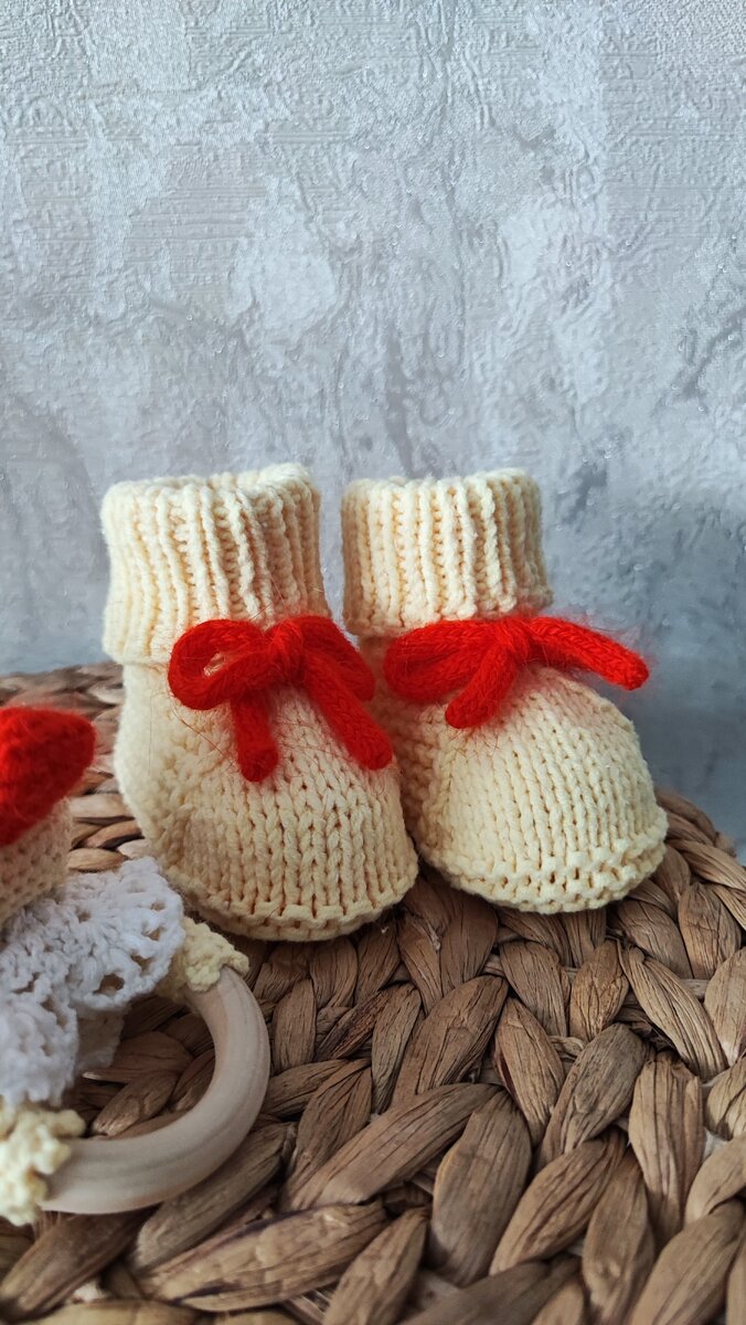 Простые пинетки спицами + описание работы
