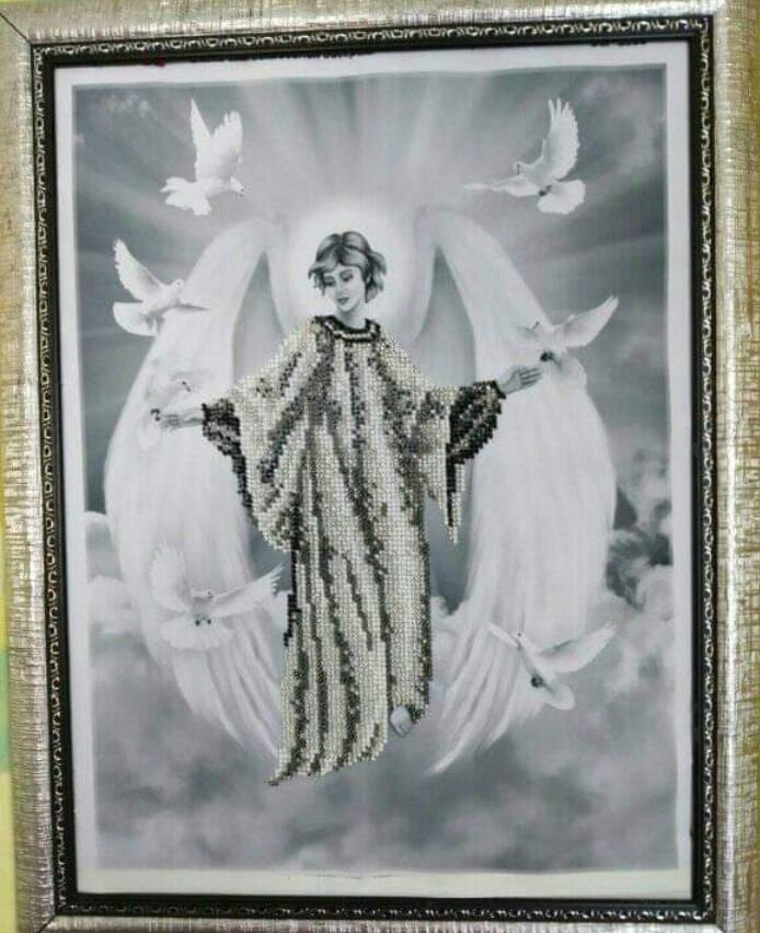Ангела хранителя я вышивала в черно -белых тонах