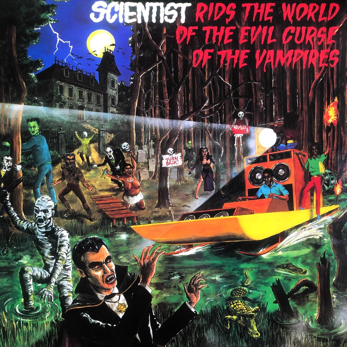 Обложка иллюстрирует главную идею альбома: владельцы саунд-системы побеждают нечисть при помощи яркого фонаря и колонок, из которых звучит священный даб. Начав карьеру в конце 1970-х в качестве ученика легендарного Кинга Табби, молодой энтузиаст Хоуптон «Сайентист» Браун сделал для даба больше, чем любой другой продюсер. Он превзошёл многих в изобретательности, развивая концепцию даба — деконструкцию вокальных миксов в звуковой коллаж посредством агрессивного ремикширования и использования эффектов. «Проклятие вампиров» — один из величайших даб-альбомов всех времён, превращающий мелодии дэнсхолла в жутковатые звуковые полотна. Исторически эта пластинка является предшественницей трип-хопа и дабстепа, но она хороша и сама по себе. Мультяшная обложка с напуганными персонажами фильмов ужасов от зомби до Дракулы отлично дополняет альбом, утопленный в эффекте эхо и потусторонних шумах. По словам самого Сайентиста, он записал эту музыку в полночь, в пятницу 13-го. Вряд ли это правда, но для п