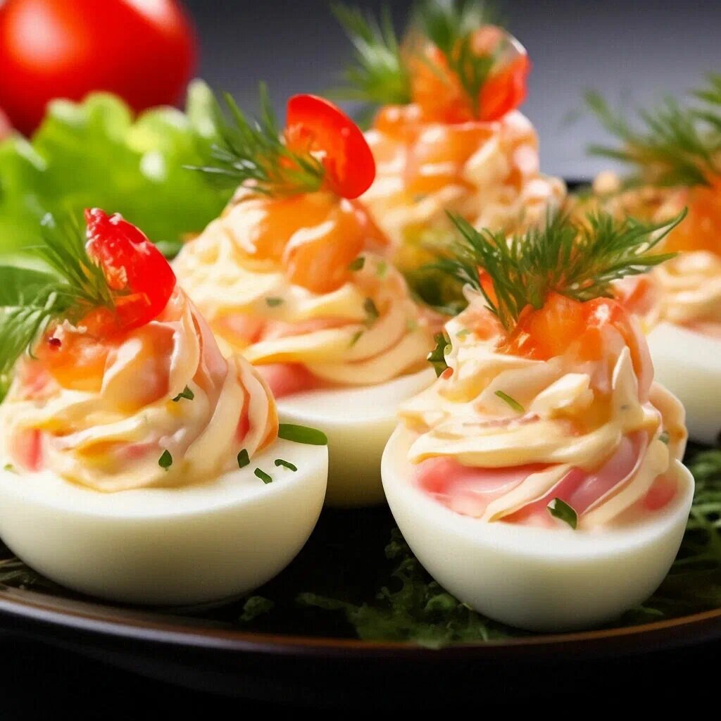 4. Наполнить этой массой белки и украсить по желанию. Приятного аппетита!