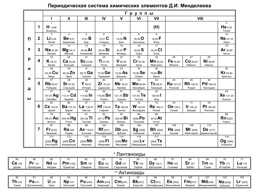 2. Найти в таблице Мендеелева эти элементы и определить их атомную массу. (Атомная масса указана возле химического элемента).