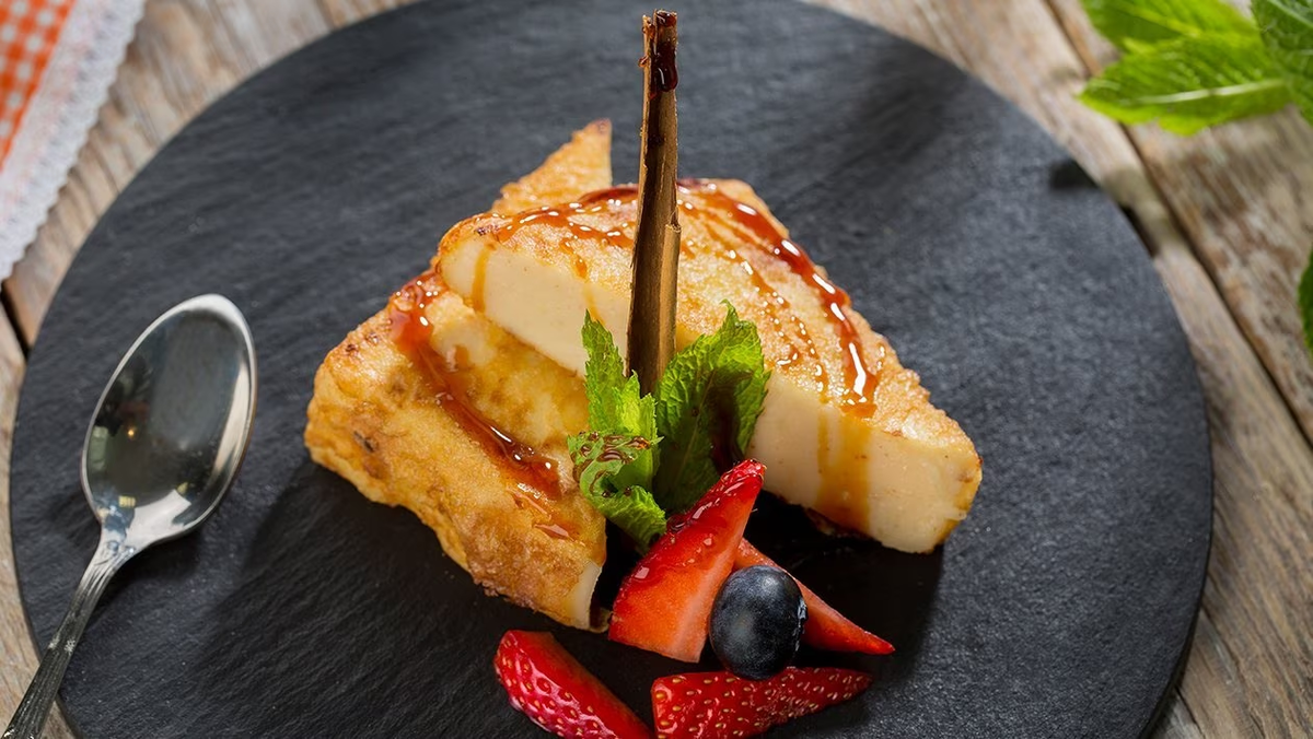 Жареное молоко (Leche frita) – один из самых необычных и странных десертов не только испанской, но и мировой кухни вообще. Откуда он взялся, точно никто не знает. Есть версия, что придумали его домохозяйки, используя все, что оказалось под рукой. Однако известно, что подобное лакомство существует в китайской, очень древней и строго традиционной кухне. Возможно, что в Испанию привез рецепт какой-нибудь корабельный повар еще в те давние времена, когда в португальском анклаве Макао, что на территории Поднебесной, хозяйничали испанцы. Приготовление десерта не так чтобы очень сложное, но требует сноровки. С первого раза получается далеко не всегда (и со второго тоже, и с третьего).