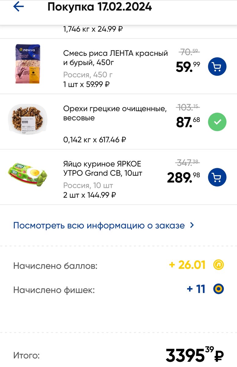 Общая цена закупки получилась почти на 3400 рублей ,но не все затраты на продукты
