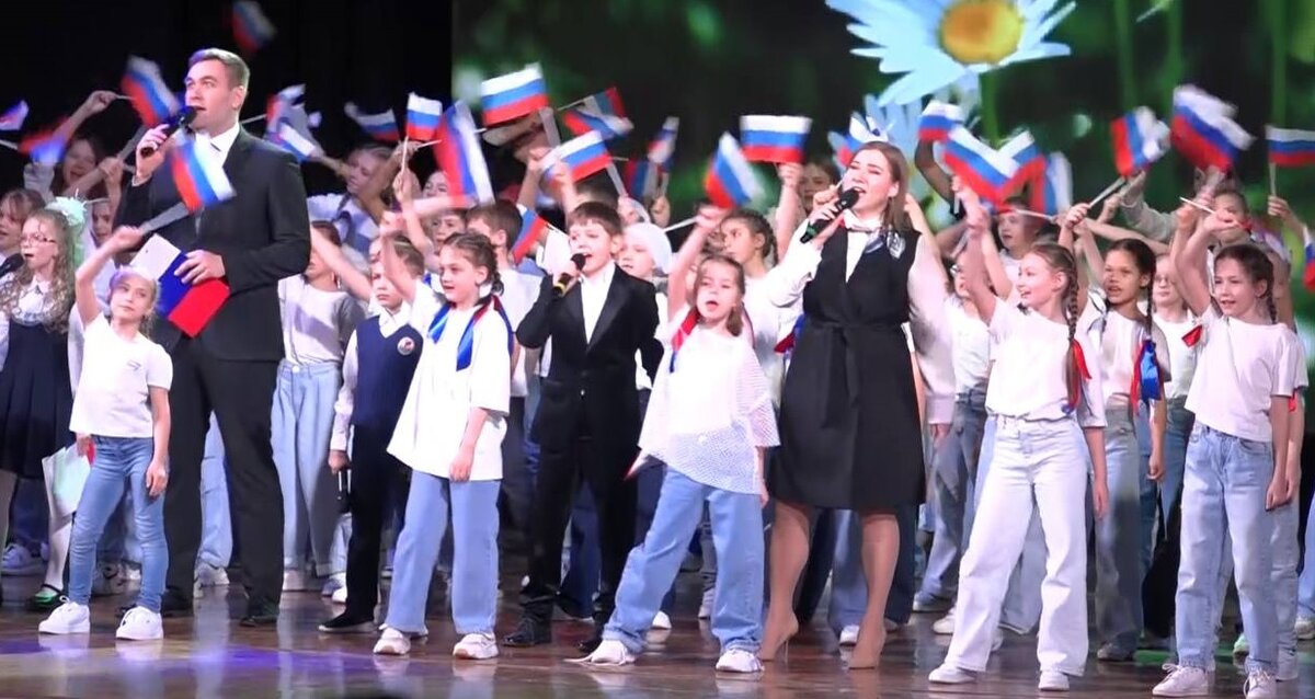 Концерт начался с торжественного выноса государственного знамени на сцену и исполнения гимна России. С музыкальными, танцевальными и стихотворными номерами на тему любви к Родине выступили ученики разных классов. Также для учащихся выступила победитель международных и всероссийских фестивалей Анна Хромченкова и коллектив народного танца «Калинка».