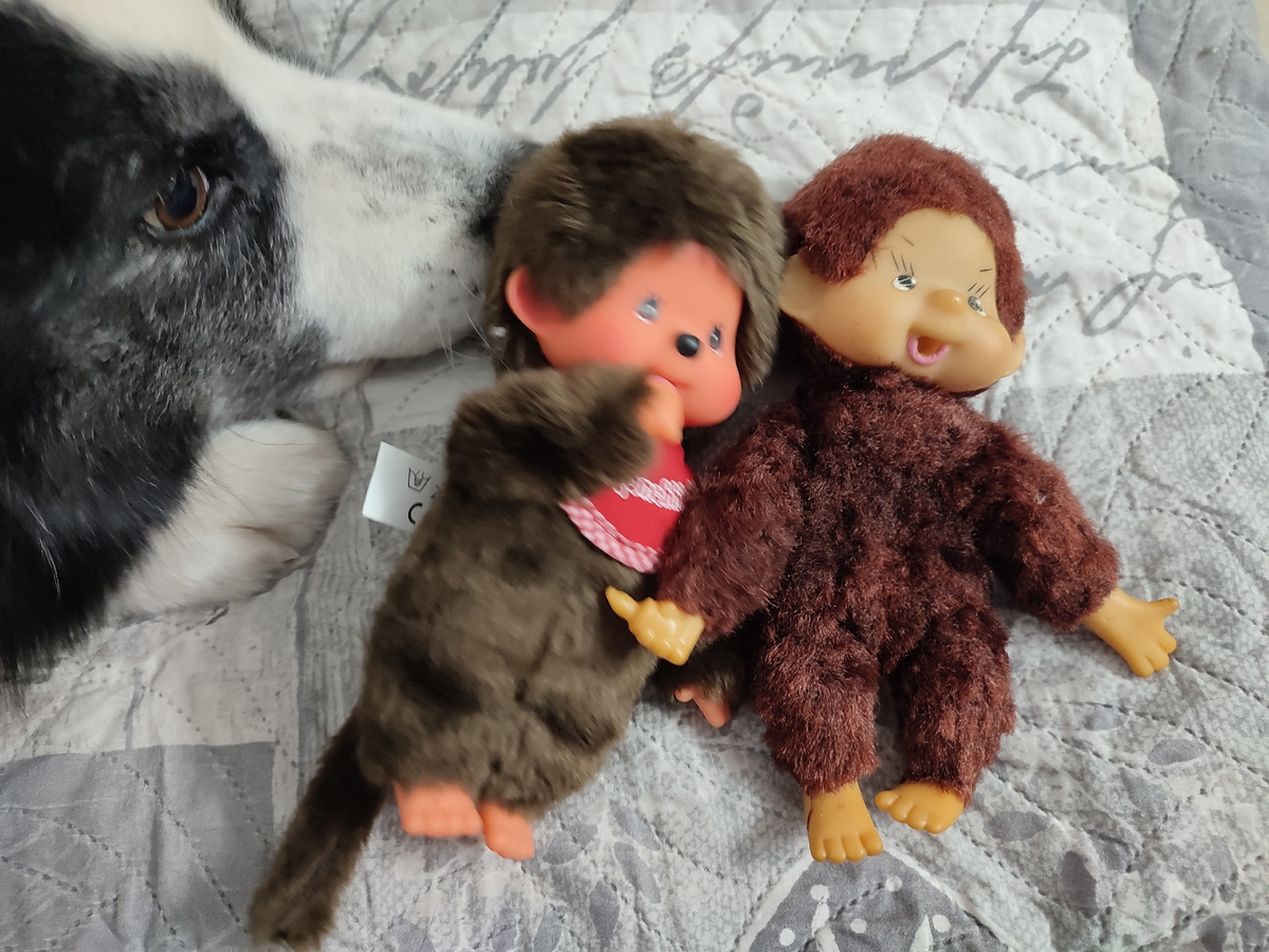 Потом, когда я уже начала коллекционировать кукол, я пыталась "вернуть" в коллекцию эту обезьяну, но именно лучевских найти было трудно. В итоге я решила заказать японский винтаж с Японии. Японский винтаж с Японии оказался китайского производства, так что я слегка расстроилась и передарила ее. Потом еще раз "японский винтаж" мне попадался на бейбиках, чуть более винта