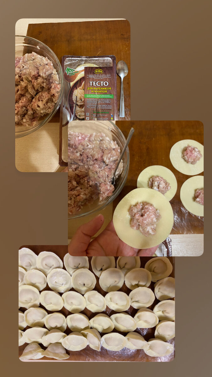 Пельмешки своими руками для любимых мужчин - один из вариантов подарка. Во время лепки пельменей я расслабилась, получила удовольствие от процесса и вкусно пообедаем всей семьей. Для пельменей я сама готовлю фарш (добавляю свинину, курицу и лук), а тесто покупаю специальное для пельменей. Одна упаковка теста рассчитана на 40 штук пельменей. В этот раз в магазине осталось тесто для вареников. Тесто тонкое, что я считаю важно. Пельмени получились крупные, мне достаточно было 7 штук скушать и быть сытой. А Вы лепите пельмени или всегда готовые покупаете? Обычно я раз в год зимой леплю пельмени. Пальчики оближешь и времени много не занимает. Фарш всегда готовый в морозилке хранится, а тесто покупаю по необходимости. В этом году решила порадовать мужа на праздник. Поздравляю с днем Защитника Отечества всех мужчин!