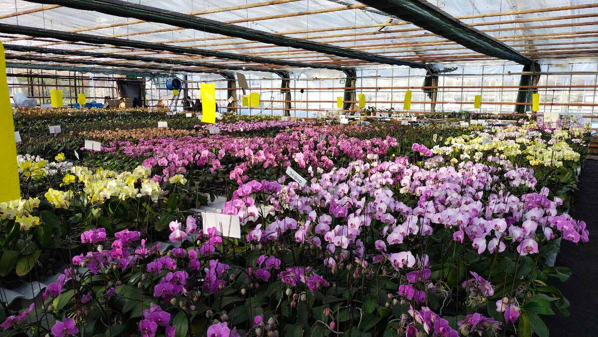 Это место раньше было почти волшебным: огромная подмосковная теплица с красивыми орхидеями и знали мы о ней давно... Я несколько раз писала о ней в этом блоге, но не упоминала адрес... потому что мне нравилось гулять там среди умиротворенной красоты. А теперь о ней уже упомянули в крупной орхидейной группе, появились видео на Youtube, а в самой теплице стало более людно. Для цветочного бизнеса владельцев теплицы это, пожалуй, хорошо, но для меня, как для любителя погулять среди пышно цветущих орхидей при минимуме людей вокруг, - не очень. Знаменитый сорт фаленопсисов "Wild Cat" был уже в виде остатков с разнообразными мутациями. Фотографировала пару недель назад, в прошлые выходные трилипсов в продаже там уже не было.