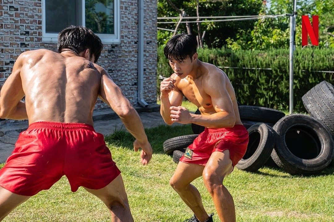 Боже, сколько мускулатуры на теле! какой он квадратный! мощный! и при этом гибкий и легкий! как роскошно, сильно и мило, и естественно он, шатаясь и выгибаясь, снимает спросонья майку с тела, омг! Божественный подъем! Восхитительное зрелище! И роскошный бритый затылочек! И 10 кило мышечной массы очень удачно распределились буквально везде, добавив милоты и упругости! Ах, как он улыбается, когда, наконец, сработавший будильник будит Уджина, потому что сам Гону проснулся за пару минут до, и вот он уже одет, а Уджин едва продрал глаза. Ни поели, ни поссали?)) А воды попить?! Ну, короче, долбаный лаконизм. Может поменьше бы криминальных мудаков снимали, и побольше бы про героев, нет?!!