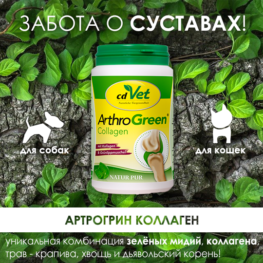 АртроГрин (ArthroGreen) от компании cdVet – это натуральный препарат для поддержки здоровья суставов и связок. Он содержит комплекс активных ингредиентов, которые способствуют улучшению подвижности и гибкости суставов, а также восстановлению хрящевой ткани. Варианты препарата: ArthroGreen Здоровые лапы – жидкий вариант препарата. - https://cdvet.pro/dlja-sobak/fitoapteka/sustavy-i-svyazki/zdorovye-lapy-100-ml ArthroGreen Классик – порошок для добавления в корм. - https://cdvet.pro/dlja-sobak/fitoapteka/solidnyj-vozrast/artrogrin-klassik-70-g ArthroGreen Юниор капсулы – капсулы с порошком препарата. - https://cdvet.pro/dlja-sobak/fitoapteka/sustavy-i-svyazki/artrogrin-yunior-kapsuly-100-sht Применение: АртроГрин рекомендуется использовать в следующих случаях: