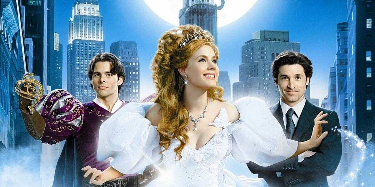 Возможно, именно поэтому на фоне рисованных героев выглядят иначе герои, живущие в реальном Нью-Йорке. Они в чём-то больше похожи на нас нынешних, являясь отображением сегодняшнего зрителя, например, как Роберт (Патрик Демпси) или его подруга Нэнси (Идина Мензел). Поэтому встретив на своём пути Жизель мы можем осознать, как сильно за это время изменился сам зритель. Жизель – это старое доброе кино. Роберт – новое. Ничего не напоминает? Можно провести параллель с недавно вышедшей «Барби» 2023 Греты Гервиг, где в целом прослеживается тот же принцип, так как фильм Гервиг, как я уже писал ранее, является сатирой на старый и новый Голливуд. В целом в Диснеевском фильме, помимо отсылок на другие сказки, экранизированные Диснеем, мы неожиданно видим отсылку к не диснеевскому фильму. Заключается это в сцене первой встречи Жизель и Роберта. Если внимательно приглядеться в Жизель есть кое-что от принцессы Анны (Одри Хепберн) из фильма «Римские каникулы» 1953г. В отличие от Анны, – которая отправилась в путешествие самостоятельно, Жизель вынуждена совершить данное путешествие: достопримечательности Рима сменяются на Нью-Йорк. Роберт по своей сути выполняет ту же роль, что и репортёр Джо Брэдли (Грегори Пек). Я обратил внимание, что картина Кевина Лима детально повторяет сцены из ленты 1953г: это первая встреча героев, затем герой вынужден оставить у себя незнакомку. А дальше, как и герой Грегори Пека вынужден сопровождать нашу героиню повсюду. В сцене в парке нас погружают в волшебный мир фильмов Дисней, на этот раз, проводя сравнение героев с Русалочкой. Но также фильме есть отсылка и к первому фильму о Мэри Поппинс, вышедшему в далёком 1964г, в виде пожилых пар, танцующих степ. И также квартира Роберта на какое-то время превращается в небольшой домик, в котором жили гномы.