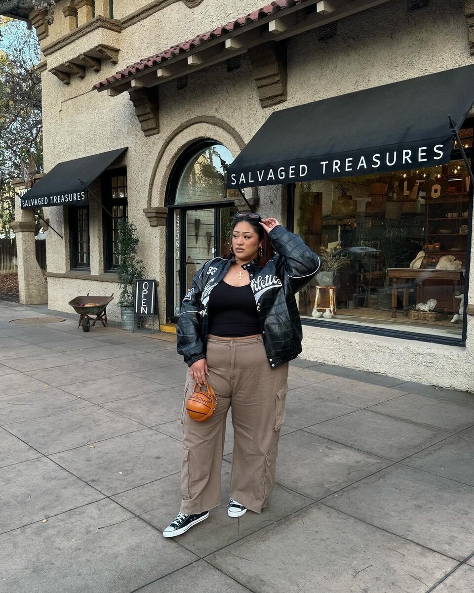 Кожаная косуха оверсайз — не лучший выбор для плюс сайз на весну.