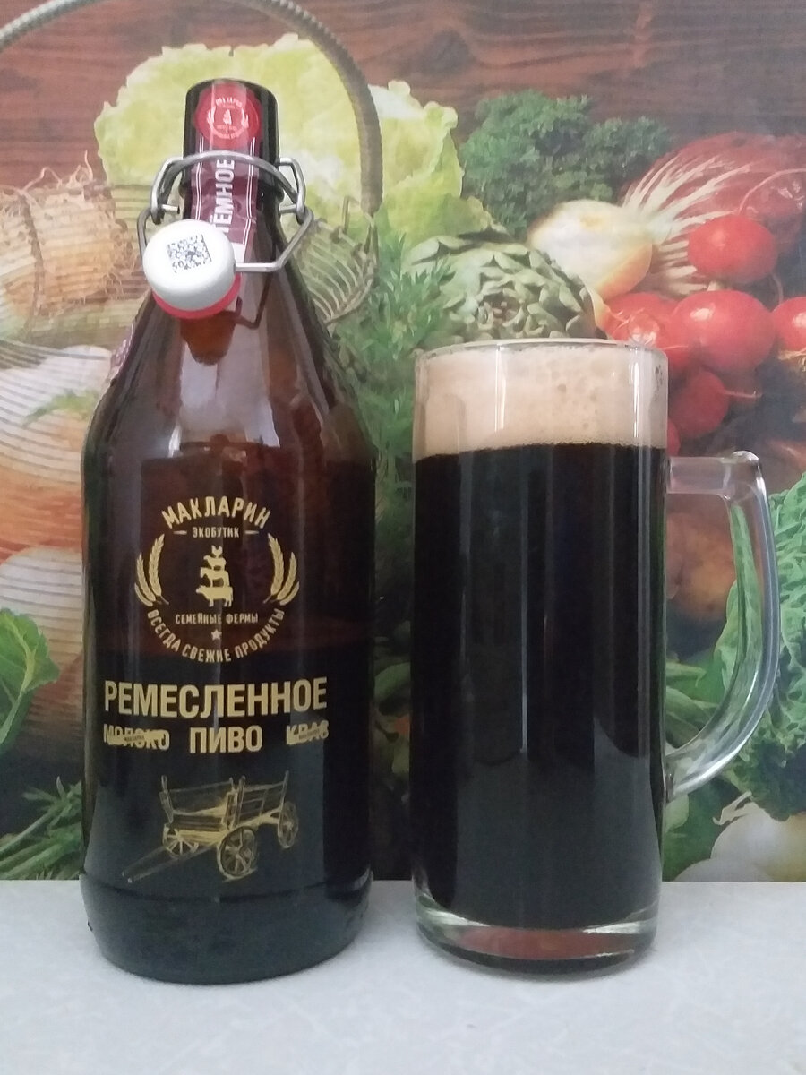 В "К&Б" появилось "Ремесленное пиво" от МакЛарин, которое варят в Твери на частной пивоварне "Афанасий". Правда оно в наличии не во всех магазинах популярного алкомаркета страны. Поэтому откройте приложение алкомаркета на смартфоне и найдите там ближайший к Вам магазин, куда его завезли. «МакЛарин» – именной бренд руководителя холдинга «Афанасий» и основателя сети бутиков Максима Ларина. Среди прочего под этой маркой выпускается пивная продукция. "Ремесленное пиво" - это пиво для настоящих ценителей, которое тверские пивовары варят по особым рецептам. В прошлый раз я попробовал светлое пиво с австралийским хмелем, а сегодня продегустирую тёмное с хмелем Chinnok. Пиво тёмное нефильтрованное неосветленное пастеризованное Упаковка: бутылка 1 л., стекло, бугель. Состав: питьевая вода, солод пивоваренный ячменный светлый и жженый, хмель Изготовитель: ООО "Частная пивоварня "Афанасий" (Тверская обл., г. Тверь) Цена: 219 рублей 99 копеек Срок годности – 120 суток Пиво в литровой бугельной б