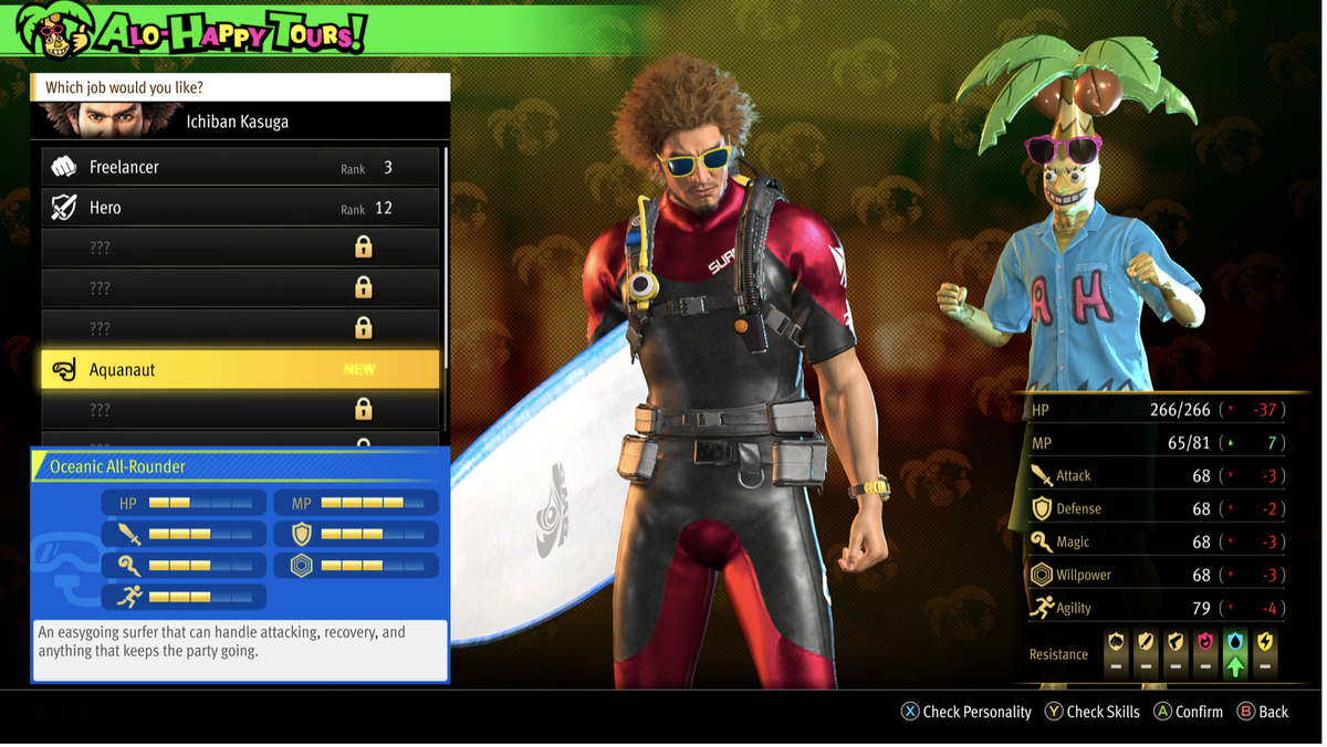 Повысить уровень Касуги и члены его группы возможно двумя способами: за счёт повышения в должности, а затем повышением рейтинга на соответствующих должностях. Предлагаемые по мере прохождения игры рабочие места — это игровая версия системы классов. Каждая работа может дать определенный уровень атаки или положительных эффектов.