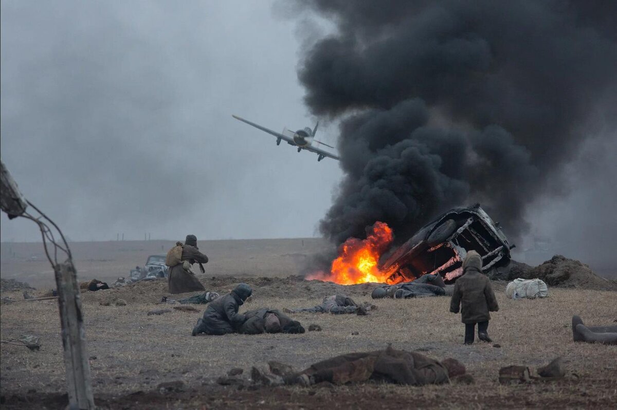 Первая сцена ужасает: стоны, трупы, маленькие дети… Много детей. И много стонов. И почти у всех раненых окровавленное лицо. Дальше в фильме не будет ни одного раненого, у которого бы не было в крови лицо. В течение фильма показываются оторванные ноги, дыры в животе и многие другие ранения, но лицо обязательно в крови. Даже главная героиня, после прыжка с парашютом, попав в окопы к нашим под утро оказывается с окровавленным лицом, хотя за это время не была ранена.