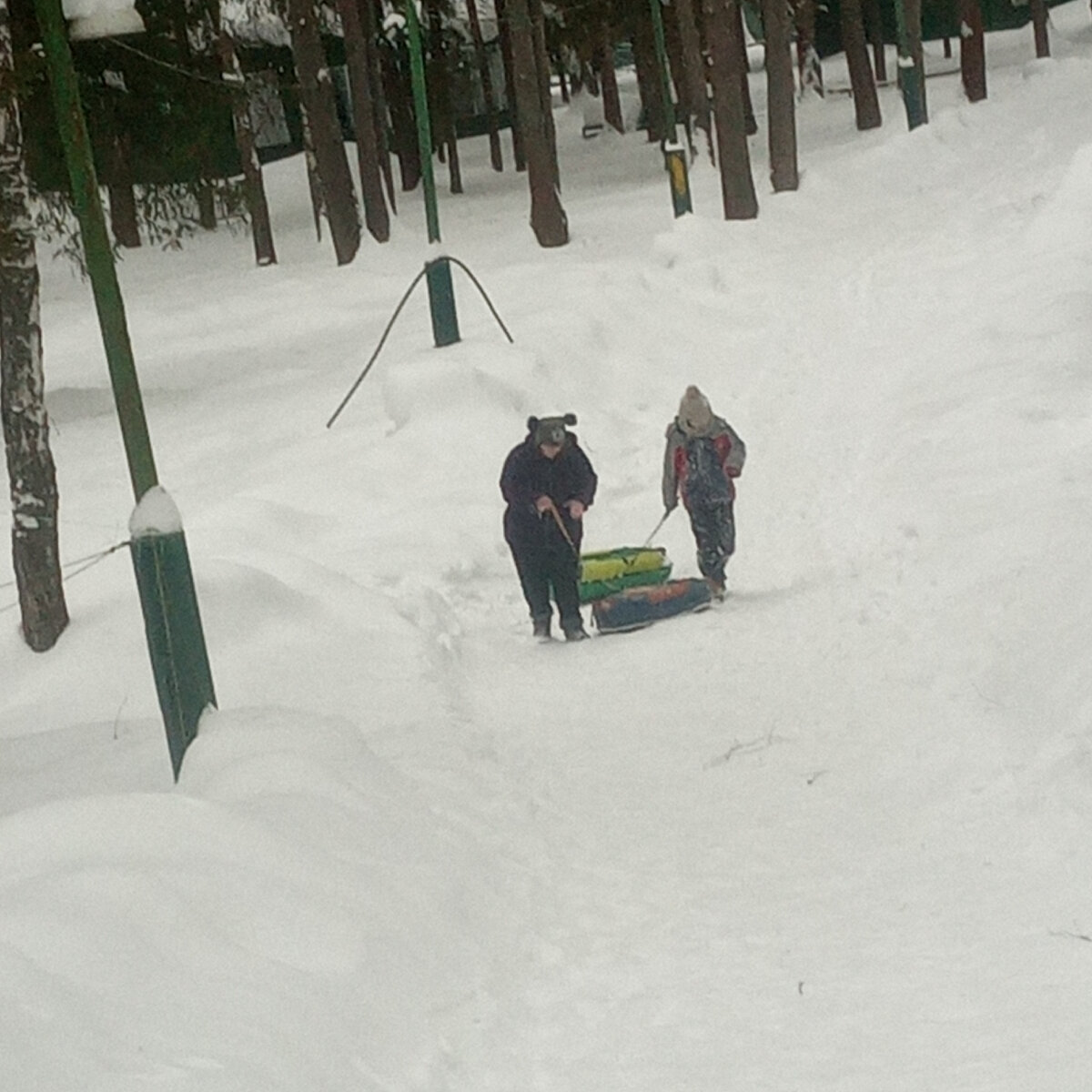Мы быстро собрались и, не упуская случая, отправились кататься на ватрушках.