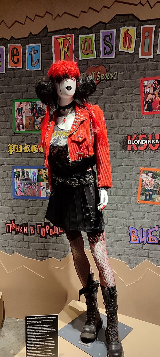 Я тут сходила на выставку,, Король и Шут". Окунулись в историю панк - рока. Истоки, как начиналось. Мода, традиция. Как пришло к нам. Я просто поделюсь фотографиями). Кто-то узнает себя. Я помню тоже носила косухи. Сами на них заклёпки и шипы ставили. И юбки. Заклёпки рвали колготки (. Панком я не была, просто нравился такой стиль в одежде. Не буду скидывать все фото. Выставка интересная, познавательная. Электронный гид сопровождал нас из зала в зал. Второй раз не пойду).