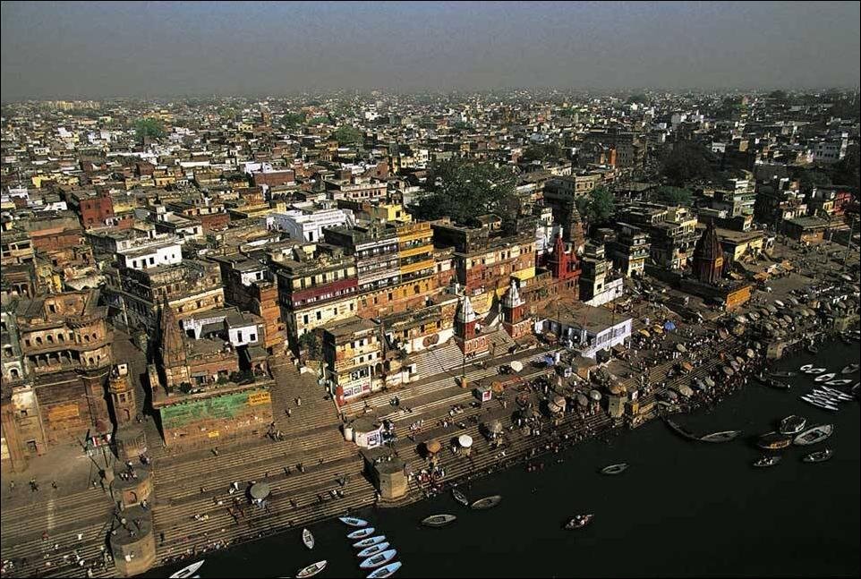 У Варанаси интересная география – он стоит на трёх холмах, которые считаются тремя остриями трезубца Шивы. При этом весь город выстроен на западном берегу Ганги – на восточном нет и никогда не было ни одного строения; он считается «тем миром», куда Шива переправляет души умерших.