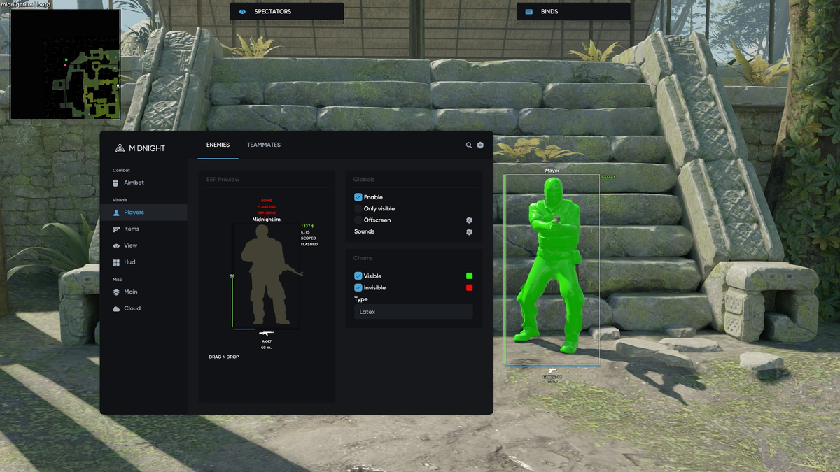 1) Midnight Сайт - https://midnight.im/?ysclid=lszoh5dwqz722873386 Midnight является одним из наиболее продвинутых читов для CS2, предоставляя игрокам возможность видеть своих противников сквозь стены, автоматически прицеливаться и стрелять, а также использовать другие функции, которые значительно облегчают игру. 2) XONE Сайт - https://xone.fun XONE - сбалансированный приватный чит CS2. Где имеется internal и external версия. Internal читы функционируют внутри процесса игры, используя инжектор для внедрения в процесс и изменения его памяти. Они ставят хуки игровых функций и классов, а также используют DirectX11 для рисования меню и работы с закрытыми данными. Чтобы работать внутри, чит ставит хуки игровых функций для работы с закрытыми данными игровых классов и функций графического движка для рисования меню, в CS 2 это DirectX11. External читы работают вне процесса игры, что делает их более трудными для обнаружения. Они могут читать и изменять память игры, что облегчает их использован