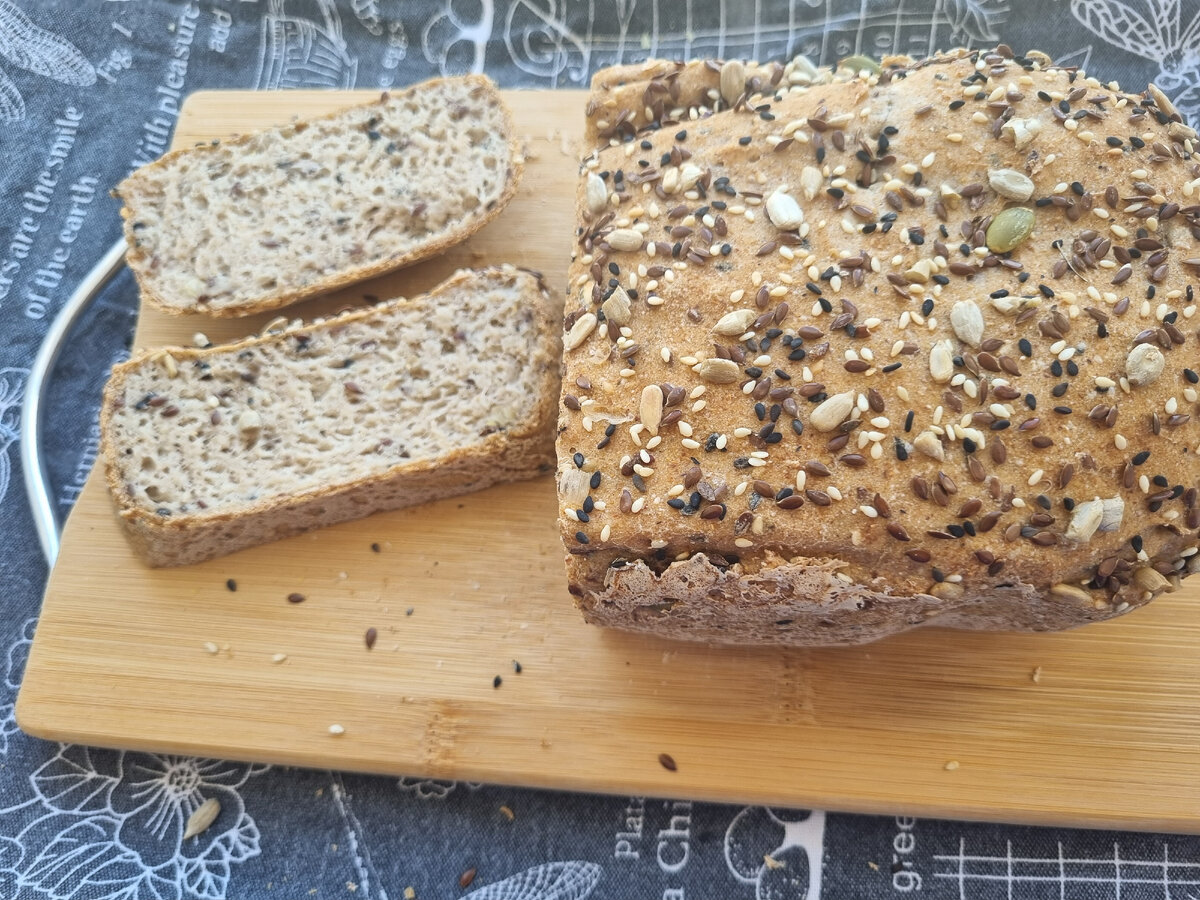 Хлеб - это то, от чего мне было сложнее всего отказаться. В самом начале перехода на Систему я пыталась заменять его сначала ржаным, но он мне вообще не подошел, потом хлебцами, но вы же сами понимаете, что очень сложно заменить кусочек мягкого хлеба на хлебец. Поэтому я экспериментировала с выпечкой хоть чего-то похожего на хлеб. Вы же все помните тот ПП-хлеб в микроволновке, который понравился многим, но не мне, к сожалению. В общем плюнула я тогда и просто минимизировала его потребление, а если надо было бутерброд, то брала хлебец. Но тут протирая хлебопечку, я прочитала, что у нее есть безглютеновый режим. И опять начались мои эксперименты с хлебом. Я покупала безглютеновые смеси и получался очень красивый и вкусный хлеб. Но, я пошла дальше и купила сухую рисовую закваску, правда руки так и не доходят ее активировать, а если честно я боюсь))) А тут на днях меня осенило, а если испечь хлеб, но заменить закваску на дрожжи? Смотрите что получилось. Итак, нам нужно: 1 ч.л. дрожжей 100