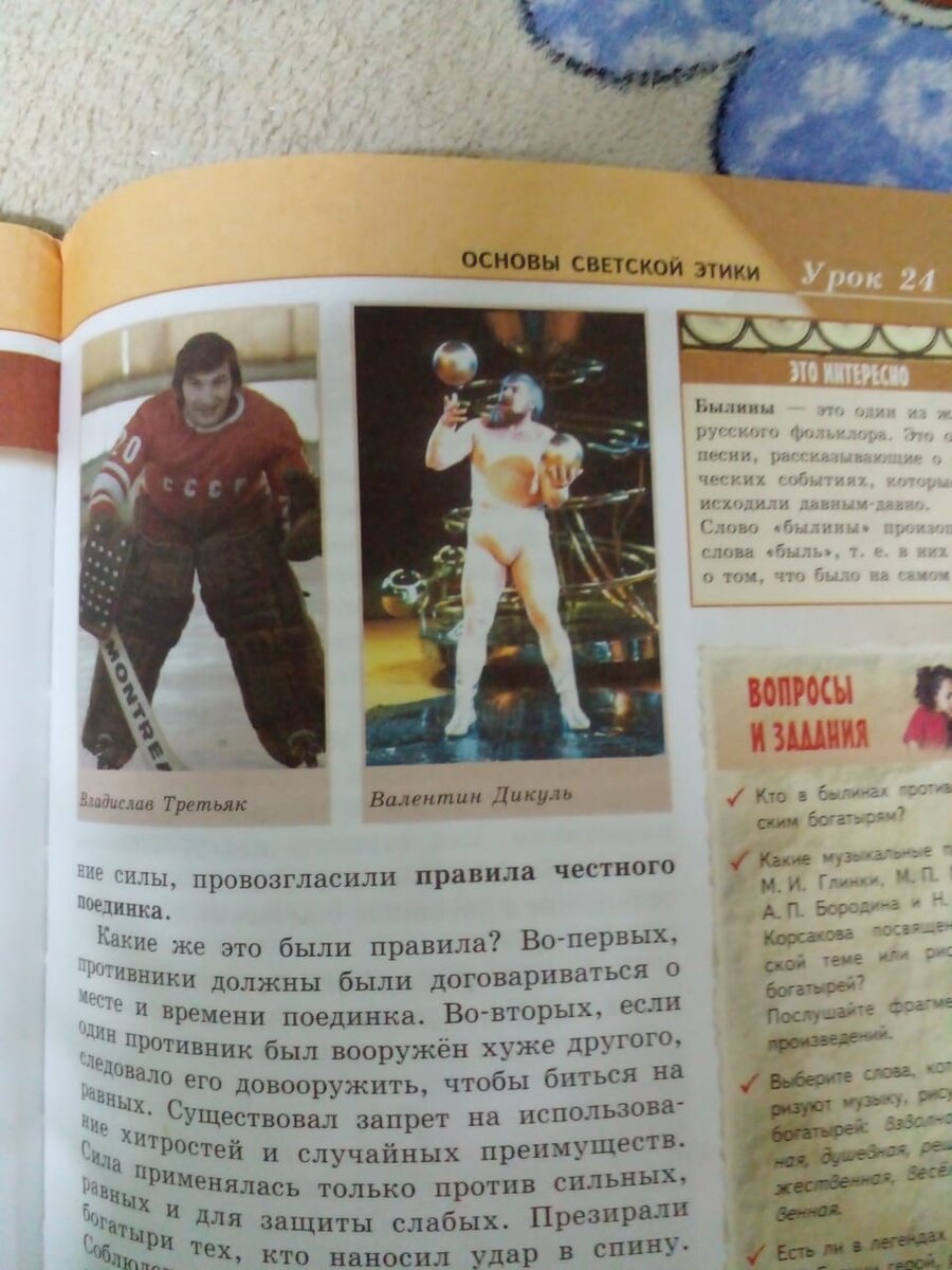 Привет. В нашей жизни появились учебники с людьми, достижения которых как бы были великими для страны. Но непонятно было одно. Например, ладно Владислав Третьяк он был Хоккеист и играл в СССР за красную Машину. Кем же был Валентин Дикуль? Он был цирковой артист. Да силач но по сути клоун. В результате... Не буду вдаваться в подробности, он разработал методику с помощью которой сам встал на ноги почему многие его считают что он великий Ортопед. Или кто там занимается костями. Я многие слова не помню. И кстати против Дикуля ничего не имею. Тут интересно одно, почему, неужели не было фотографии там где Валентин Дикуль находится в нормальной более менее одежде, почему его преподносят в костюме что ребёнок говорит что он голый? 😱 Вот и мне интересно получить ответ на этот вопрос. У вас есть соображения, как вы считаете, почему? А на этом всё. Ставьте лайки подписывайтесь, пишите комменты. Пакеда.