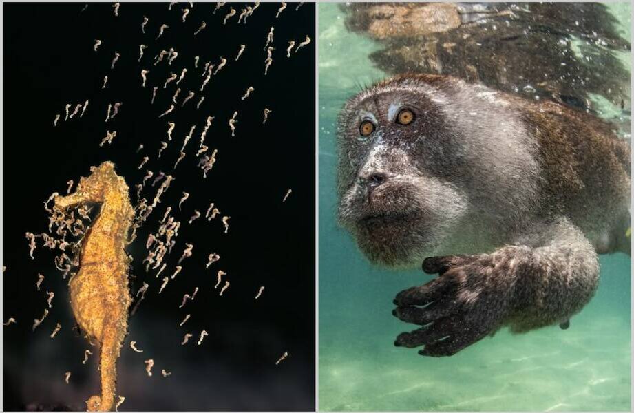 Морские коньки во время родов и другие обитатели морей, которые попали в объектив. Показывать мир океана сложно, ведь чтобы сфотографировать его обитателей, нужно погрузиться в воду, но некоторых мастеров это не останавливает. Именно среди них онлайн-журнал The Underwater Photography Guide провел двенадцатый конкурс океанической фотографии. Благодаря таким соревнованиям мы можем увидеть настоящие сокровища, скрытые под водой. Премия знакомит с морскими обитателями и напоминает, что в море еще много неизведанного. Предлагаем вам погрузиться в морскую пучину, чтобы увидеть всю красоту, которую скрывает океан. Появление на свет морских коньков У этих животных именно самец вынашивает детенышей: вот тут мы рассказывали о самых лучших папах в мире животных. Портрет морского льва Это любовь! Макака из Таиланда, которая освоила рыбалку Кальмар во время удачной охоты Наутилус передвигается верхом на медузе Малыш ламантин и его мама Самец большеглаза выпускает икринки Очаровательный моллюск Cost