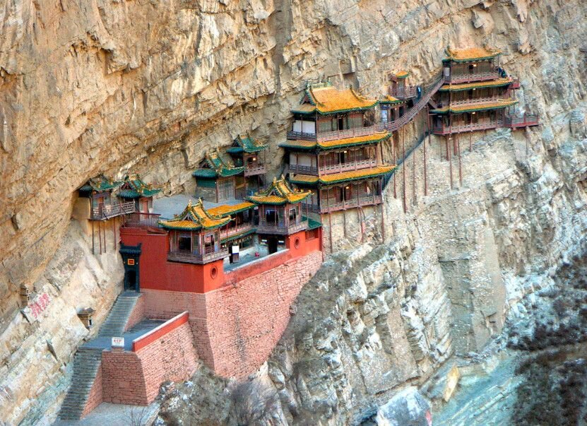 Храмовый комплекс, построенный на скале около священной горы Хэншань провинции Шаньси в Китае. Монастырь расположен в 65 км к юго-востоку от города Датун. В окрестностях Датуна также расположены гроты Юньган. Сюанькун-сы имеет большое историческое значение в регионе, активно посещается туристами. Сюанькун-сы имеет большое историческое значение в регионе, активно посещается туристами. Монастырь построен в 491 году при династии Северная Вэй. Храмовый комплекс объединяет буддийские, даосские и конфуцианские алтари. В монастыре вдоль отвесной стены расположено около 40 залов и павильонов. Здания держатся на деревянных сваях, упирающихся в скалу. Сама скала используется также как задняя стена помещений, выемки в скале сделаны для изображений и статуй Будды. Всего в монастыре стоят 80 статуй из разных материалов. Самое крупное рельефное изваяние - Татхаты. Монастырь с 1982 охраняется как Национальный Памятник КНР.