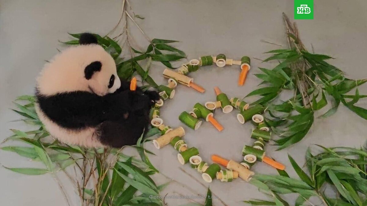 [ Смотреть видео на сайте НТВ ] Панде Катюше на 6 месяцев подарили первую морковку. Панде Катюше из Московского зоопарка исполнилось полгода. В честь этого события сотрудники зоосада приготовили для нее вкусный сюрприз: малышка получила свою первую морковку. Детеныш большой панды впервые родился в России в августе прошлого года. Родителей малышки — самца Жуи и самку Диндин — доставили в Москву из Китая в 2019 году в честь 70-летия установления дипломатических отношений между странами. Сейчас медвежонок весит почти 15 килограммов. На портале «Активный гражданин» в течение месяца выбирали имя для маленькой панды. В опросе поучаствовали 380 тысяч человек. С начала голосования из 10 предложенных вариантов лидировали три: Маша, Мо Мо (от первого слога слова «Москва») и Катюша. За последний вариант — самый популярный — москвичи отдали 29% голосов. По материалам: телеграм-канал «Светлана Акулова». [ Смотреть видео на сайте НТВ ]