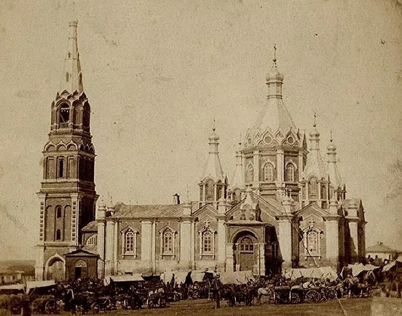 Настоящим украшением Касимова является Соборная площадь. Посреди площади возвышается величественный, краснокирпичный Вознесенский собор, построенный в 1854-1862 годах по проекту рязанского губернского архитектора Н.И.Воронихина. Колокольня к сожалению до нашего времени не уцелела, а на старых фотографиях можно увидеть что в начале XX века её использовали как парашютную вышку. Фотографии собора (февраль 2024):