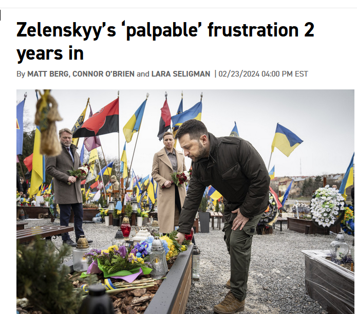 Издание "Politico" тут сообщило, что Зеленский спустя два года "ощутимо" разочарован. Ну, это если их заголовок перевести...