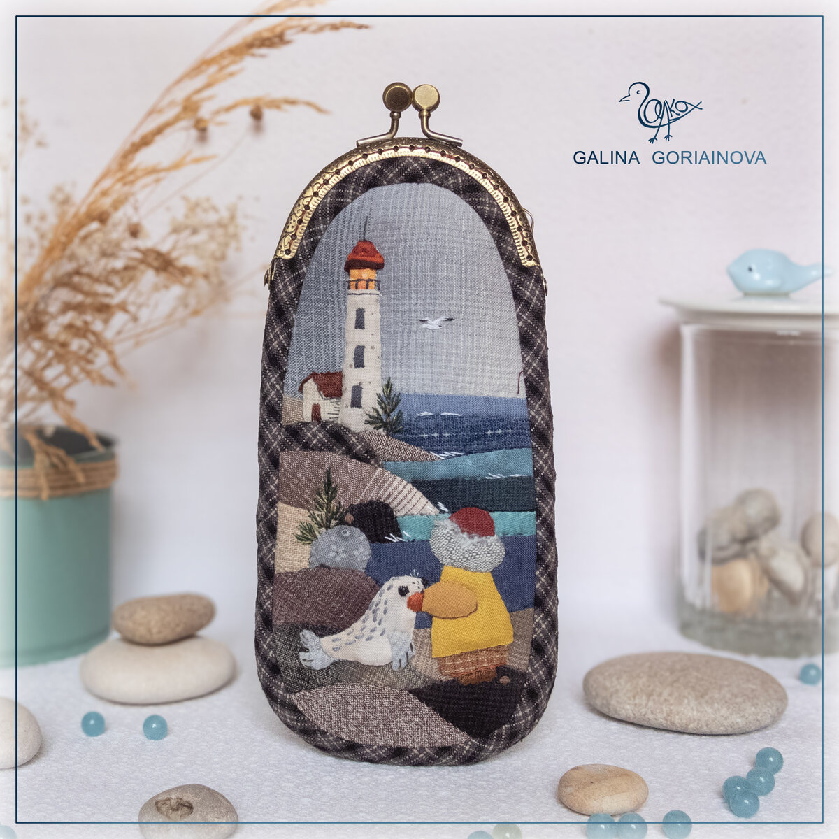 Ну, а купить очечник можно в моем магазине на ЯМ https://www.livemaster.ru/gal-krasnotal Представляем наш изысканный футляр для очков в стиле пэчворк, настоящий шедевр, передающий атмосферу спокойного морского пейзажа. Этот футляр для очков, вдохновленный красотой моря, маяком, возвышающимся на горизонте, и трогательной связью между девушкой и тюленем, — это больше, чем просто практичный аксессуар — это ворота в безмятежный мир.