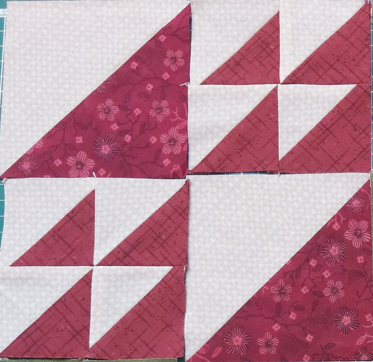 Т.е. четвертинки с 4мя треугольниками в квадрате мы можем шить по блоку 6 и по размерам ниже.