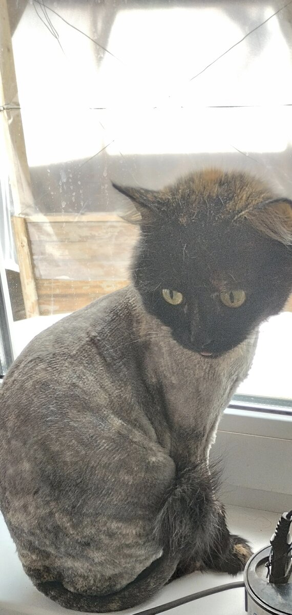 Так сказал сын про нашу кошку Фросю после стрижки. Вызывали грумера на дом. Сами мы не смогли справится с шерстью этой кошки. В прошлом году она была еще после улицы, с лысым хвостом, обрастала и не было проблем. А тут колтуны начали скатываться. Мы пытались сами их вычесывать. Накупили кучу разных колтунорезов. И никакого успеха. У меня разодрана рука, вот и все наши достижения. Фрося сражается как лев. Дочка младшая посоветовала найти грумера и постричь ее. Обратились к специалисту, нашла по отзывам. Все пишут, что укрощает самых агрессивных животных. Вот, думаю, это точно то, что надо. Сегодня приехал специалист. Но по первым минутам я поняла, что ему одному с Фросей явно не справиться. Позвала мужа. Сама ушла. Успокаивала Глашу. Потому что Фрося кричала так, как будто ее режут на куски. У Глаши на первом этаже был шок и ужас. Она то пряталась под кровать, то вылезала и хотела бежать на второй этаж на помощь подруге. Но страх пересиливал и она останавливалась и опять шла пря