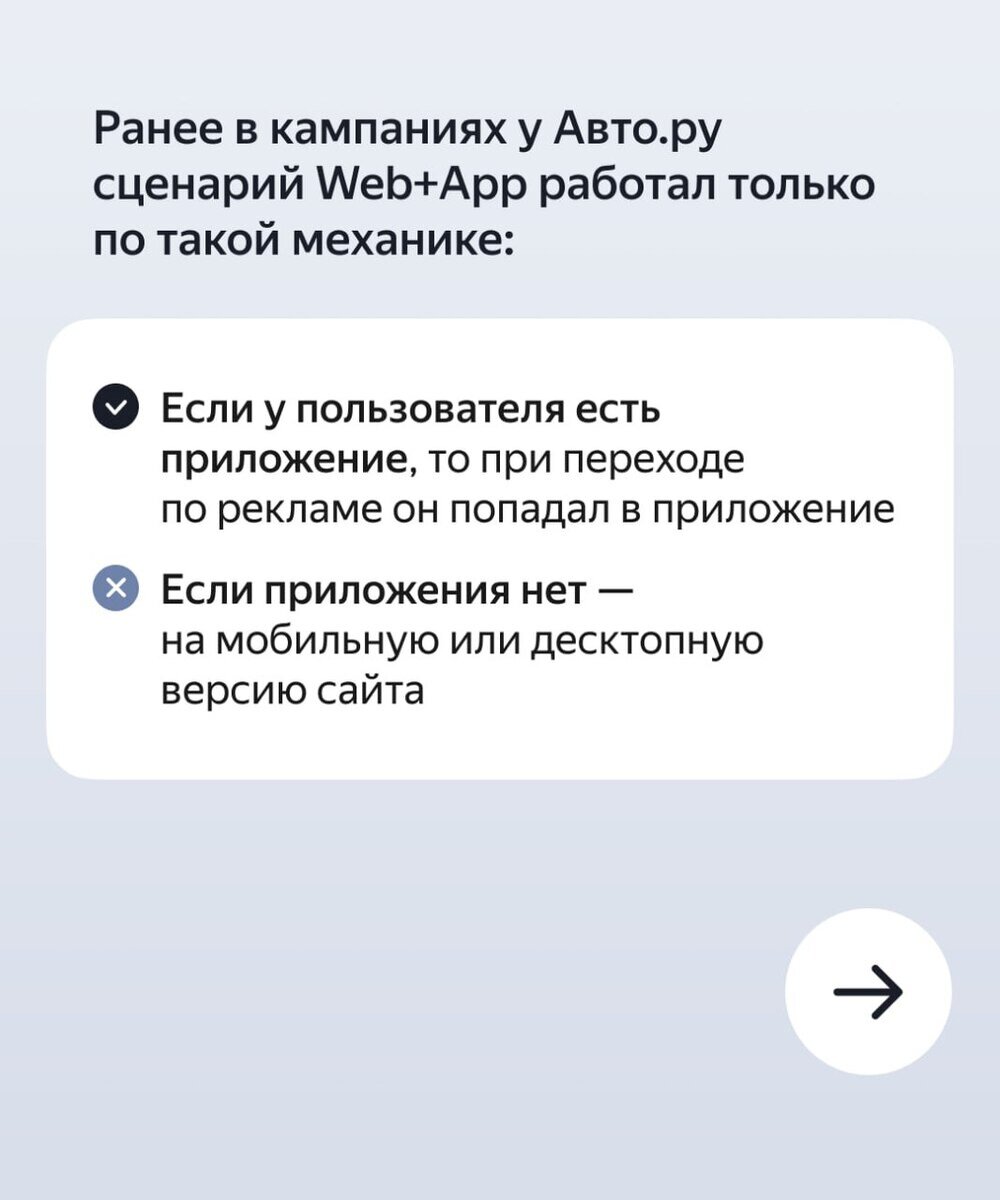Π΄Π΅ΠΉΡΡΠ²ΠΈΠΉ. ΠΡΠ°ΠΊ, ΠΊΠ°ΠΊ ΠΈΠΌ ΡΠ΄Π°Π»ΠΎΡΡ ΡΡΠΎ ΡΠ΄Π΅Π»Π°ΡΡ Ρ ΠΏΠΎΠΌΠΎΡΡΡ Π½ΠΎΠ²ΠΎΠ³ΠΎ ΡΡΠ΅Π½Π°ΡΠΈΡ ΠΌΠ°ΡΡΡΡΡΠΈΠ·Π°ΡΠΈΠΈ ΠΏΠΎΠ»ΡΠ·ΠΎΠ²Π°ΡΠ΅Π»Π΅ΠΉ ΠΈ ΡΠΌΠ°ΡΡ-Π±Π°Π½Π½Π΅ΡΠΎΠ²? ΠΠ²ΡΠΎ.ΡΡ Π²Π½Π΅Π΄ΡΠΈΠ» ΠΈΠ½Π½ΠΎΠ²Π°ΡΠΈΠΎΠ½Π½ΡΠΉ ΡΡΠ΅Π½Π°ΡΠΈΠΉ Web+App, ΠΊΠΎΡΠΎΡΡΠΉ ΠΏΠΎΠ·Π²ΠΎΠ»ΡΠ΅Ρ ΠΏΠ»Π°Π²Π½ΠΎ ΠΏΠ΅ΡΠ΅Π½Π°ΠΏΡΠ°Π²Π»ΡΡΡ ΠΏΠΎΠ»ΡΠ·ΠΎΠ²Π°ΡΠ΅Π»Π΅ΠΉ Ρ Π²Π΅Π±-ΡΠ°ΠΉΡΠ° Π½Π° ΠΌΠΎΠ±ΠΈΠ»ΡΠ½ΠΎΠ΅ ΠΏΡΠΈΠ»ΠΎΠΆΠ΅Π½ΠΈΠ΅. ΠΡΠΎΡ ΡΡΠ΅Π½Π°ΡΠΈΠΉ Π±ΡΠ» ΠΈΠ½ΡΠ΅Π³ΡΠΈΡΠΎΠ²Π°Π½ Ρ ΡΠΌΠ°ΡΡ-Π±Π°Π½Π½Π΅ΡΠ°ΠΌΠΈ Π½Π° ΡΠ°ΠΉΡΠ΅, ΠΊΠΎΡΠΎΡΡΠ΅ ΠΏΡΠ΅Π΄Π»Π°Π³Π°Π»ΠΈ ΠΏΠΎΠ»ΡΠ·ΠΎΠ²Π°ΡΠ΅Π»ΡΠΌ ΠΏΠ΅ΡΠ΅ΠΉΡΠΈ ΠΊ Π±ΠΎΠ»Π΅Π΅ ΡΠ΄ΠΎΠ±Π½ΠΎΠΌΡ Π΄Π»Ρ ΠΈΡΠΏΠΎΠ»ΡΠ·ΠΎΠ²Π°Π½ΠΈΡ ΠΌΠΎΠ±ΠΈΠ»ΡΠ½ΠΎΠΌΡ ΠΏΡΠΈΠ»ΠΎΠΆΠ΅Π½ΠΈΡ. Π’Π°ΠΊΠΈΠΌ ΠΎΠ±ΡΠ°Π·ΠΎΠΌ, ΠΊΠΎΠ³Π΄Π° ΠΏΠΎΠ»ΡΠ·ΠΎΠ²Π°ΡΠ΅Π»Ρ ΠΏΠΎΡΠ΅ΡΠ°Π» Π²Π΅Π±-ΡΠ°ΠΉΡ ΠΠ²ΡΠΎ.ΡΡ, ΠΎΠ½ ΠΌΠΎΠ³ Π²ΠΈΠ΄Π΅ΡΡ ΡΠΌΠ°ΡΡ-Π±Π°Π½Π½Π΅ΡΡ, ΠΏΡΠ΅Π΄Π»Π°Π³Π°ΡΡΠΈΠ΅ ΡΡΡΠ°Π½ΠΎΠ²ΠΈΡΡ ΠΌΠΎΠ±ΠΈΠ»ΡΠ½ΠΎΠ΅ ΠΏΡΠΈΠ»ΠΎΠΆΠ΅Π½ΠΈΠ΅ Π΄Π»Ρ ΠΏΠΎΠ»ΡΡΠ΅Π½ΠΈΡ Π±ΠΎΠ»Π΅Π΅ ΡΠ΄ΠΎΠ±Π½ΠΎΠ³ΠΎ ΠΈ ΠΏΠ΅ΡΡΠΎΠ½Π°Π»ΠΈΠ·ΠΈΡΠΎΠ²Π°Π½Π½ΠΎΠ³ΠΎ ΠΎΠΏΡΡΠ°. ΠΡΠ° ΡΡΡΠ°ΡΠ΅Π³ΠΈΡ ΠΏΠΎΠ·Π²ΠΎ