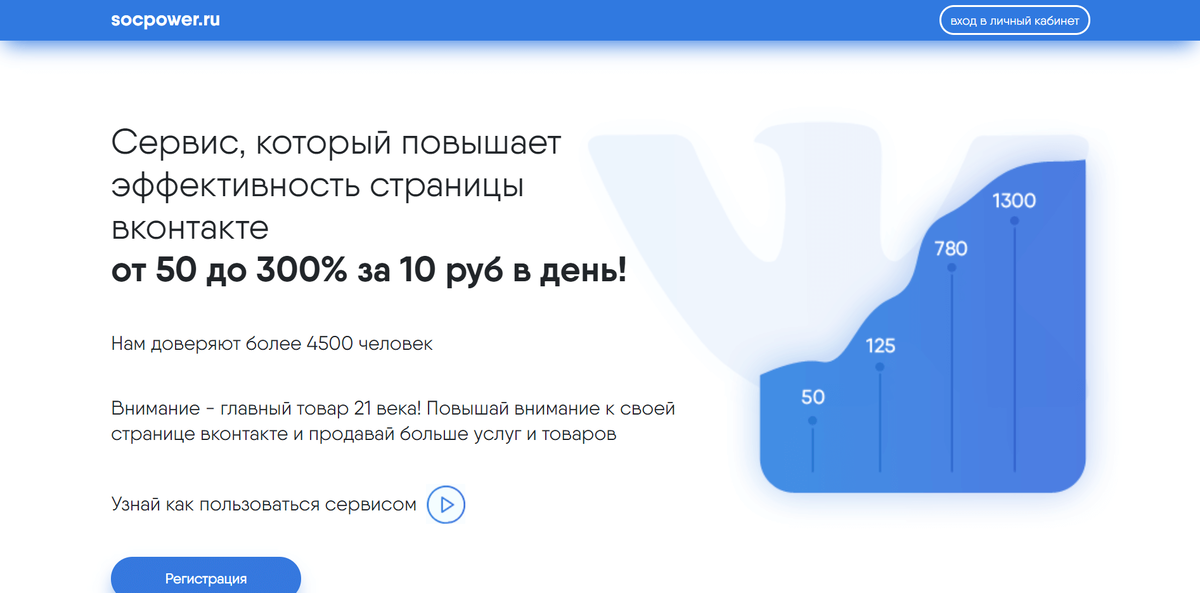 Повысить эффективность страницы ВКонтакте теперь можно от 10 рублей в день с помощью инструмента SocPower (промокод SP-kod20 даёт дополнительный бонус 20 % от суммы пополнения) . Использование сервиса позволяет повысить эффективность вашей личной страницы от 50 до 300%. Если вы занимаетесь бизнесом и в качестве одной из площадок продвижения используете страницу ВКонтакте, то данное решение создано специально для вас. Теперь продвижение услуг и товаров в сети станет ещё более эффективным.