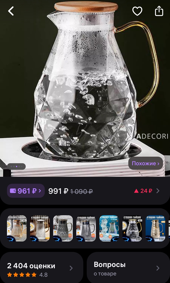 Привет, дорогой читатель. Сегодня я подготовил для вас разнообразную подборку товаров с Вайлдберриз. Они вполне бюджетные и имеют хороший рейтинг и отзывы на сайте. ‼️Статья не спонсирована и несет исключительно ознакомительный характер, поэтому ссылок я не оставляю. Здесь собраны товары, которые приглянулись лично мне и я не коем образом не настаиваю на их покупке, а просто делюсь.‼️ 1.Кувшин Кувшин для воды с крышкой подойдет для горячих и холодных напитков. Графин для напитков выполнен из жаропрочного термостойкого боросиликатного стекла, его можно нагревать на плите и кипятить в нём воду, наполнять горячей водой или кипятком, подогревать напитки прямо из холодильника, делать морс или глинтвейн. Заварник для чая станет желанным подарком на любой кухне - как маме, так и подруге или бабушке! Артикул: 36215173 2.дозатор для жидкого мыла Дозатор для жидкого мыла отлично освежит интерьер вашей ванной комнаты. Диспенсер для мыла выполнен из качественного, прочного ABS-пластика, поэтому о