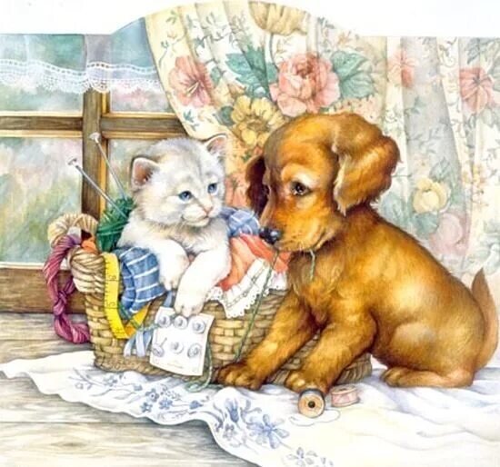 Нашим деткам. Сказка про то,как кошка Муся учила щенка Шарика разным премудростям