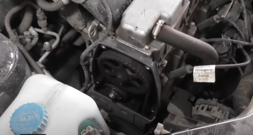 Ремень ГРМ еще стоит родной. Посмотрите внимательно на это место, которое я вам показываю.