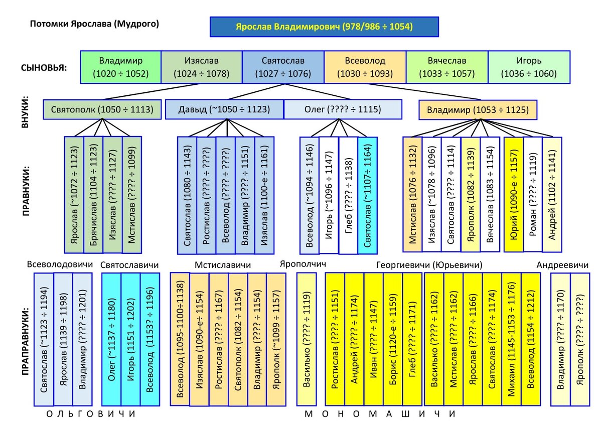 Эта борьба, сначала – против троюродных (братьев) – Всеволода и Игоря Ольговичей, затем – против племянника Изяслава Мстиславича и его братьев, составляла, практически главную суть государственной политики на протяжении 16-ти лет в период с 6647 (1139)-го по 6663 (1155)-й годы. Перипетии происходящего в этот период, описаны в предыдущих параграфах: