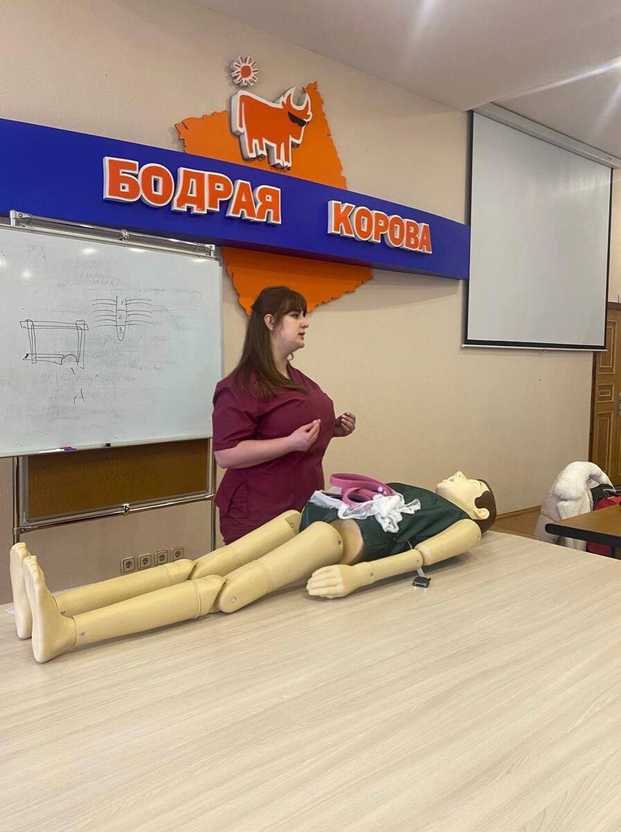 Сегодня был проведен мастер-класс на базе хладокомбината "Бодрая корова". Наши инструкторы, студентки медицинского института: Осадчая Елизавета Александровна и Костина Дарина Алексеевна провели трехчасовое занятие по обучению первой помощи для работников предприятия.