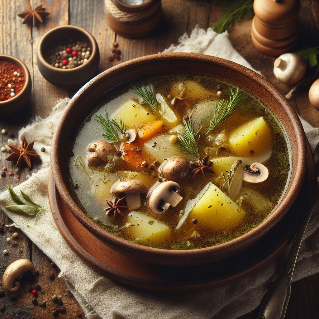 Ингредиенты: - Грибы (шампиньоны или ваши любимые) - 200 г - Картофель - 3 шт. - Морковь - 1 шт. - Лук - 1 шт. - Чеснок - 2 зубчика - Оливковое масло - 2 ст. л. - Соль, перец - по вкусу - Укроп, петрушка - по вкусу Инструкции: 1. Нарежьте грибы, картофель, морковь и лук на кубики. 2. В кастрюле с оливковым маслом обжарьте лук и морковь до золотистого цвета. 3. Добавьте грибы и обжаривайте еще 5 минут. 4. Добавьте картофель и залейте водой так, чтобы она полностью покрывала овощи. 5. Варите суп на медленном огне в течение 20-30 минут, пока картофель не станет мягким. 6. Добавьте измельченный чеснок, соль, перец и зелень. Варите еще 2-3 минуты. 7. Подавайте горячим. Этот суп - идеальное блюдо для холодных зимних дней. Он согреет вас и подарит чувство уюта. Приятного аппетита!