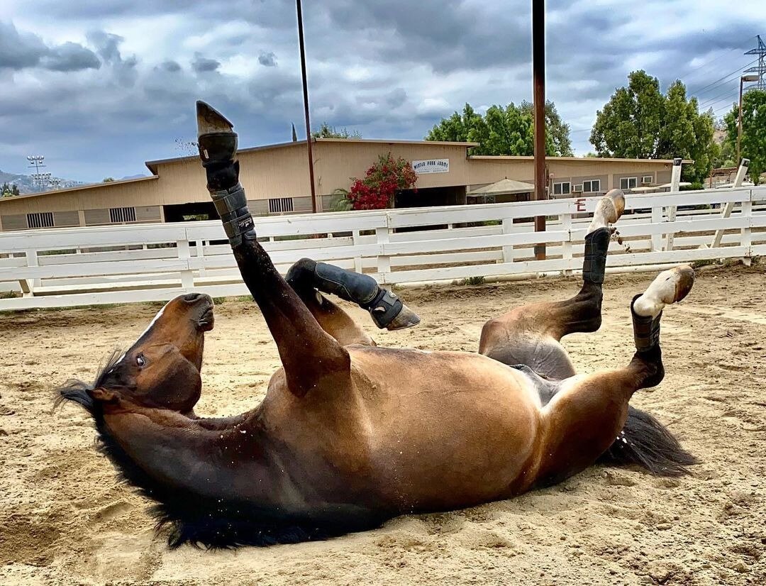 Лошади перекатываются, когда они счастливы и находятся в хорошем настроении.